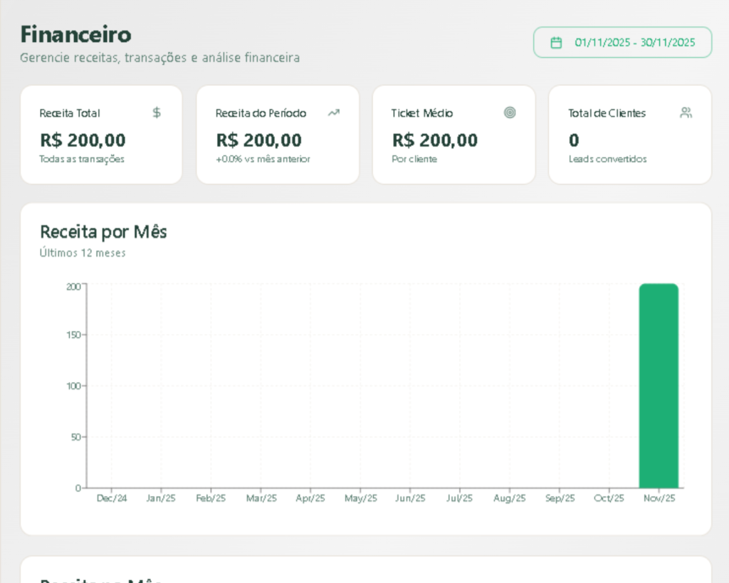 Controle entradas, despesas, pendências e resultados do mês com uma visão financeira prática para a rotina do escritório.